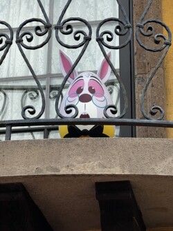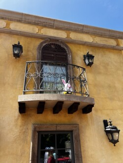 On a balcony near La Hacienda de San Angel, is where you can spot the White Rabbit egg.