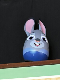 Last but not least, inside the Odyssey Pavillion, is where you will find Judy Hopps. Go into the area where all the tables are set up, turn around, face the entrance, and look up.