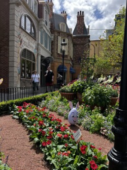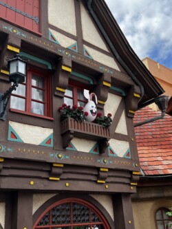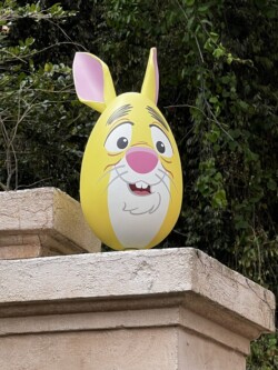 One of the fun activities you can enjoy around Easter is the Egg-Stravaganza Scavenger Hunt at Epcot. People of all ages can have a great time finding these cute Easter eggs, each representing a beloved bunny rabbit, hidden around the Epcot World Showcase. You can purchase a map for $9.99 at several locations around the park, including World Traveler (located at the International Gateway entrance), Creations shop (located near the front of the park), and the Festival Markets (scattered around the park). Then, as you find the hidden eggs in each country, mark its location with the matching sticker. Once you fill up your map you can take it to one of the locations listed on the map to receive a prize. And don’t worry, even if you don’t complete the scavenger hunt, you are still entitled to your prize just with the purchase of the map. This year, the prize is a choice of six different Easter egg character charms. Ask a cast member for more details if needed. I didn’t purchase a map, so I didn’t receive my prize, but I did have a great time finding the hidden eggs throughout the World Showcase. Some were super easy to find, others a little more hidden. Epcot has had a lot of these different hunts throughout the years, and they were always a hit with my kids when they were younger. It was a great way to keep them engaged while touring the World Showcase. Below is a photo album of the eggs in each country around the World Showcase. It also includes where to find them in case you get stumped. (click on each picture for a larger version)