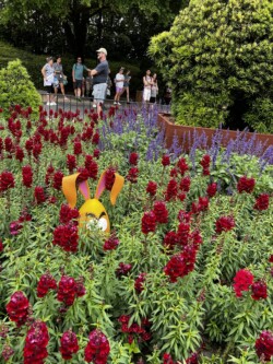 In the United Kingdom, the March Hare is hidden in one of the garden areas in front of the gazebo stage, at the back of the pavilion. He was a little harder to spot because some of the plants had grown up around him.