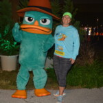 Shortly before getting to Epcot, I passed the 5-mile mark and knew that I was going to make it so I slowed down at this point and took my time running the last 1.2 miles. I even got in line for a couple of pictures….one with the 100 Years sign in front of Spaceship Earth and one with Perry the Platypus, before rounding the last curve to the finish line where Marc was waiting for me. (click on thumbnails for larger images)