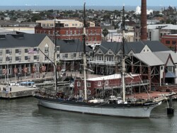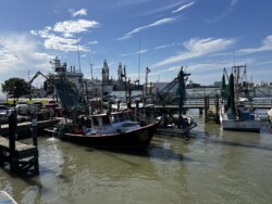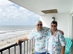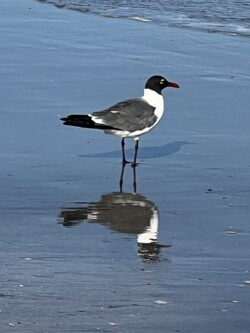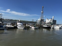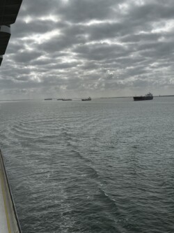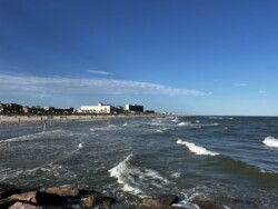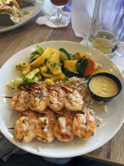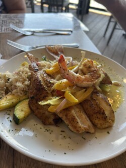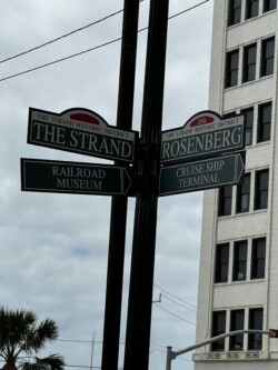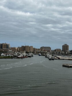 Once we arrived in Houston, we picked up our rental car to drive to Galveston for the night, arriving there mid-afternoon. It was not time to check into our rental for the night, so we drove around a little bit and then stopped for a late lunch/early dinner at Katie’s Seafood House. We put our name in for a table outside along the water, then found seats at the bar to get a drink and wait. This restaurant is a couple blocks from the cruise port, so once our table was ready, we were seated outside at a great tabe, where we could watch the cruise ships heading out to sea.