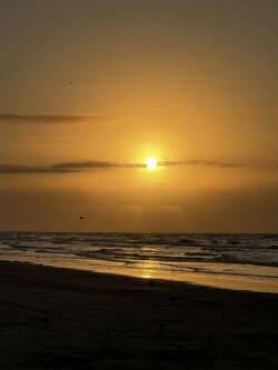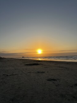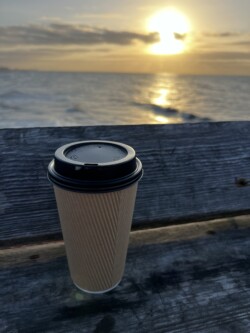 Marc and I were awake early this morning, so we decided to walk along the beach to see the sunrise. We stopped at the pier to get coffee, then went up to the observation deck to enjoy the view and drink our coffee.