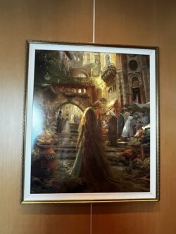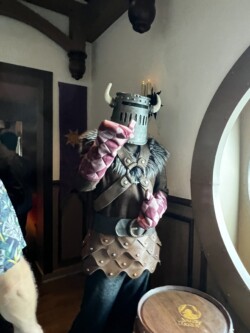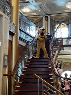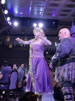 We chose the early seating time, so our assigned dinner is at 5:45 each evening. The Disney Cruise Line uses rotational dining, which means you rotate through the three main dining rooms, eating in a different one each night. You also keep the same wait staff throughout the entire cruise. Our dinner tonight was at Rapunzel’s Royal Table, where we enjoyed a delicious four-course meal complete with entertainment from Rapunzel herself.