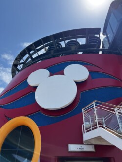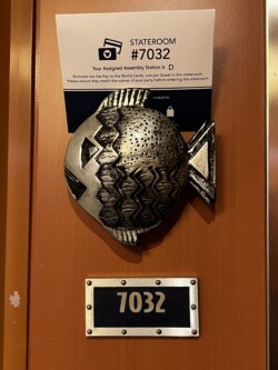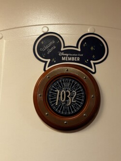 Shortly after we boarded, our staterooms were ready, so we dropped off our carry-on luggage and set out to explore the ship. When we arrived, we found a Disney Vacation Club Member magnet on the door of our room, which was a nice touch.