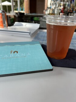Once my laundry was done and I was finished working, I returned to the room where Sara was lounging after sleeping in. Then we got ready and headed over to the Dolphin for lunch. We ate at Cabana Bar and Beach Club, located at the main pool. I had the Roasted Mushroom Flatbread, Sara had the Shawarma Kebob, and we both ordered a couple of different types of beer.