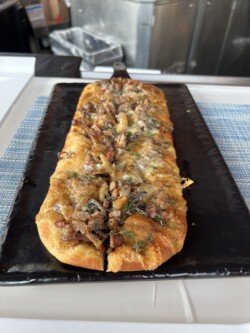 After drinks, we headed to The Edison for our dinner reservation. This 1920s industrial gothic-themed restaurant, decorated like a 1920s electric company, is one of my favorite places to eat in Disney Springs. The atmosphere and the food are both amazing. In the evenings, there is a live band on the stage. After 10 pm, the restaurant becomes an adult-only space focused on craft cocktails and Cabaret entertainment. There are also costumed dancers, variety acts, and a DJ on Thursdays, Fridays, and Saturdays, making this a trendy hot spot.