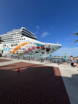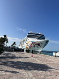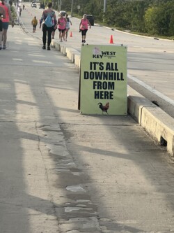 At the halfway point, the course turned around and went back down A1A along the waterfront, up Whitehead Street, past the cruise port (where the Norwegian Pearl had docked for the day), through Mallory Square, and back to the starting point. Since I had made such a good time in the first half, I was able to walk most of the second half. My knee didn’t start aching until a little after the 10-mile mark, but it wasn’t bad, and I was able to keep going, finishing with an official time of 3 hrs and 37 minutes which was an average time of 16:38/per mile. I may have been one of the last people to finish, (there were about 60 people who finished after I did) but my main goal today was to finish the race, so I was happy with my achievement!