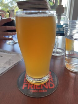 After the race, there was a table of food for the runners, including bananas, fruit, bagels, cream cheese, and peanut butter, so after I sat in the shade and ate my snack, I walked back to the rental to meet up with Cara (who had finished about 20 minutes before me), and Sara who was waiting for us. Once I got back to the house, I cleaned up and went lay by the pool for a couple of hours to decompress and enjoy a celebratory beer.