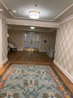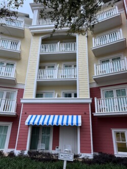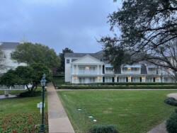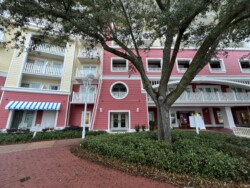 January 16, 2024 – I was awake early, so I decided to get dressed and take a walk. I absolutely love to explore this resort early in the morning because it is always so peaceful. Disney’s Boardwalk Inn and Villas are actually two resorts in one. On one side is Disney’s Boardwalk Inn, one of the Disney Deluxe Resort Hotels, and on the other is Disney’s Boardwalk Villas, A Disney Vacation Club Resort, which features studios, one, two, and three-bedroom villas. All the DVC rooms, except the studios, have full kitchens, washers and dryers, and separate living and sleeping spaces. A lobby connects the two sections, which share all the amenities, such as restaurants, a fun feature pool, two quiet pools, and access to the Boardwalk, which has restaurants, shops, and nightly entertainment. We are staying in a studio on the DVC side of the resort.