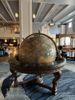The lobby of the Yacht Club is always a fun stop, and I love taking people there to check it out. This beautiful lobby has a nautical theme, with a giant globe and a ship’s wheel. We didn’t want to spend too much time here, so we only visited the Yacht Club and didn’t make it over to the Beach Club side.