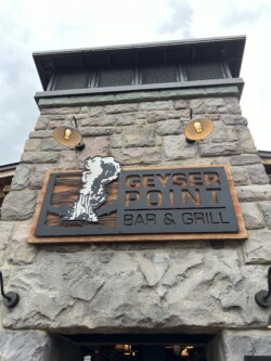 When we got to the Hollywood Studios bus stop, the first bus that came was the one that stopped at both the Contemporary and Wilderness Lodge Resorts. I recommended we stop at Wilderness Lodge, explore the resort, and grab lunch at Geyser Point Bar and Grill. After a quick look at the menu, Sara and Cara thought it sounded good, so that became our next destination. Disney’s Wilderness Lodge is another fun resort themed after the American Northwest National Park Lodges. It has a majestic lobby filled with totem poles, fireplaces, and a stream that starts in the lobby and continues to the pool. I really like this resort but have not stayed here since January 2006, so I need to try to get back here soon.