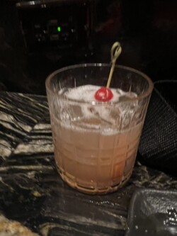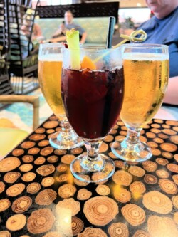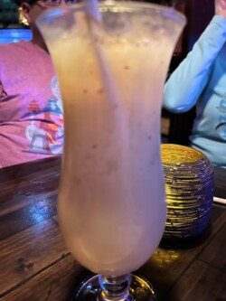 After we left Trader Sam’s, we took an Uber back to our resort, where we dropped our stuff off in the room. Then Sara and I went to the Belle Vue Lounge for our next round, while Cara called her daughter and joined us a little later. This cute little lounge, located just off the lobby, has a 1930s theme and is a great place to relax. We grabbed tables outside, as it was a little less crowded and was a great place to people-watch.
