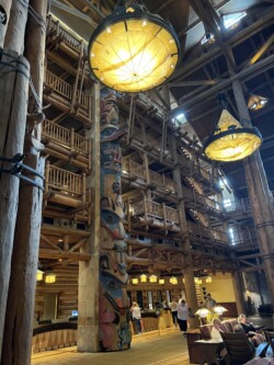 Fun Fact: Wilderness Lodge has not one but two different Disney Vacation Club Resorts attached to it. The original property, Boulder Ridge Villas, opened in 2000 and is in a separate building connected to the lobby by a covered walkway. The newest addition is Copper Creek Villas and Cabins, which opened in 2017 and occupies the southwest wing of the main building. There are also 26 waterfront stand-alone two-bedroom cabins that accommodate up to eight people. The resorts share all their amenities, such as restaurants, transportation, and pools. These resorts also have a Friendship Boat that runs all day to the Magic Kingdom and a separate line that goes to the Contemporary and Fort Wilderness Campgrounds, but that route does not start until 3 pm.