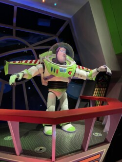 I snagged boarding group 1 for TRON in the virtual queue this morning, so we headed to Tomorrowland. We rode Buzz Lightyear’s Space Ranger Spin, and just as we exited, our boarding group was called, so we headed over to TRON. TRON Lightcycle Run does not use a traditional standby line. To ride it, you have to either purchase at spot an individual lightning lane spot or try to get a free boarding pass in the virtual queue at 7 am on my Disney Experience App. If you are successful, it will give you a boarding group number and an estimated return time. Once your boarding group is called, you have an hour to return to the ride entrance and get into the line to ride. If you are unsuccessful in getting one at 7 am, you can try again at 1 pm as long as you have entered the Magic Kingdom before that time. If you are lucky enough to get assigned to the first ten groups, then you will be in the first call-back group, which means there should be no line, and you will be able to walk on the ride with minimal wait. Sara and Cara enjoyed the ride and giggled the whole time and for some time after.
