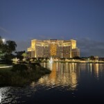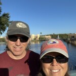 After spending the afternoon at the pool, we went back to the room to shower and then had dinner at Three Bridges Bar and Grill at our resort. After dinner we went up to the Dahlia Lounge at the top of the Gran Destino Tower, so Marc could check it out. It is a cool little lounge with both inside and outside seating. You can see Epcot and Hollywood Studios and see the nightly fireworks from there. We plan to try to see them from there another night as we needed to get to bed early tonight since our 5K starts at 5:00 AM tomorrow.