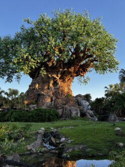 After my long day of travel yesterday, I couldn’t fall asleep, and the last time I looked at my clock, it was almost 2 am, so when my alarm went off this morning, I turned it off and went back to sleep for an hour. When I finally got up, I headed to Animal Kingdom. I had a backstage tour of the elephant habitat called Caring for Giants booked mid-morning. I made it to the park around 8 am, grabbed a coffee from Joffrey’s at the entrance, and then spent the next 30 minutes or so wandering around the park and exploring all the little details that make this park so amazing.