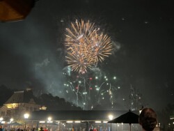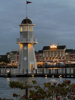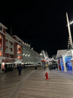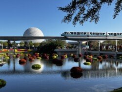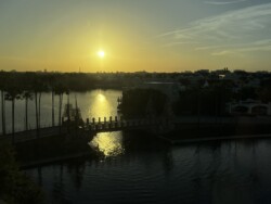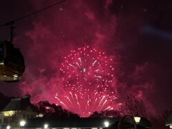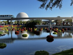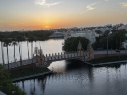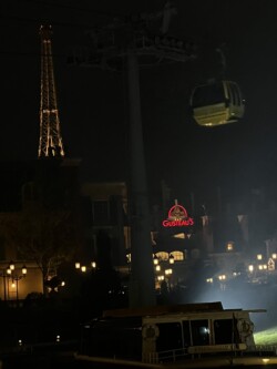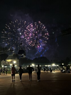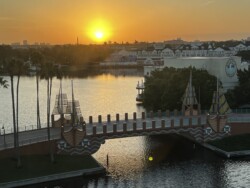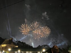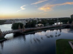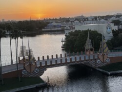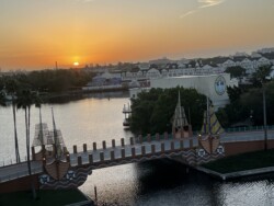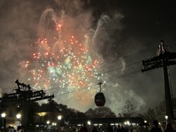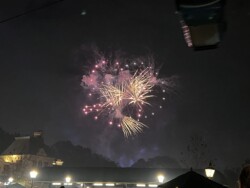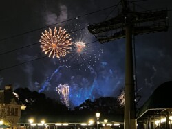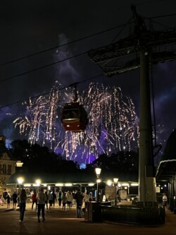 Then, I watched the nightly fireworks from right outside the park. Although you could not see the fountains in the middle of the World Showcase Lagoon, you could see all the higher fireworks. This was an interesting view with the Skyliner in the foreground. The best part was that I didn’t have to fight crowds leaving the park after the show.