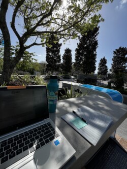I decided to set myself up the newly opened section of World Celebration, which has plenty of countertops and table space. I found a quiet corner to call my office for the morning.