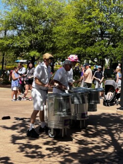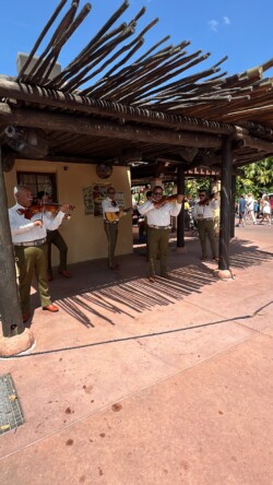 Along the way, I caught the JAMMitors, a fun group of percussionists dressed like Janitors who play their music on trash cans! Then, I stopped in Mexico for Empanadas and a Tulum. I found a table in the shade to eat and caught a set of Mariachi Cobre, the resident band at the Mexico Pavilion.