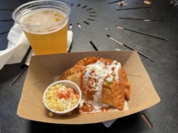 After cleaning up, I returned to Epcot to listen to The Orchestra, featuring members from ELO, at the Garden Rocks Concert. Right before the show, I stopped at the Magnolia Terrace, the outdoor kitchen in American Adventure, for a Muffuletta Panini and their beer flight, which I took with me into the show.