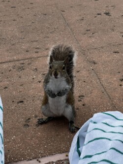 I spent the rest of the afternoon at the pool, where I made a new little friend. This squirrel, who was not scared of people, was probably waiting for me to drop some food. Unfortunately, I had nothing to share with him, but he kept trying.
